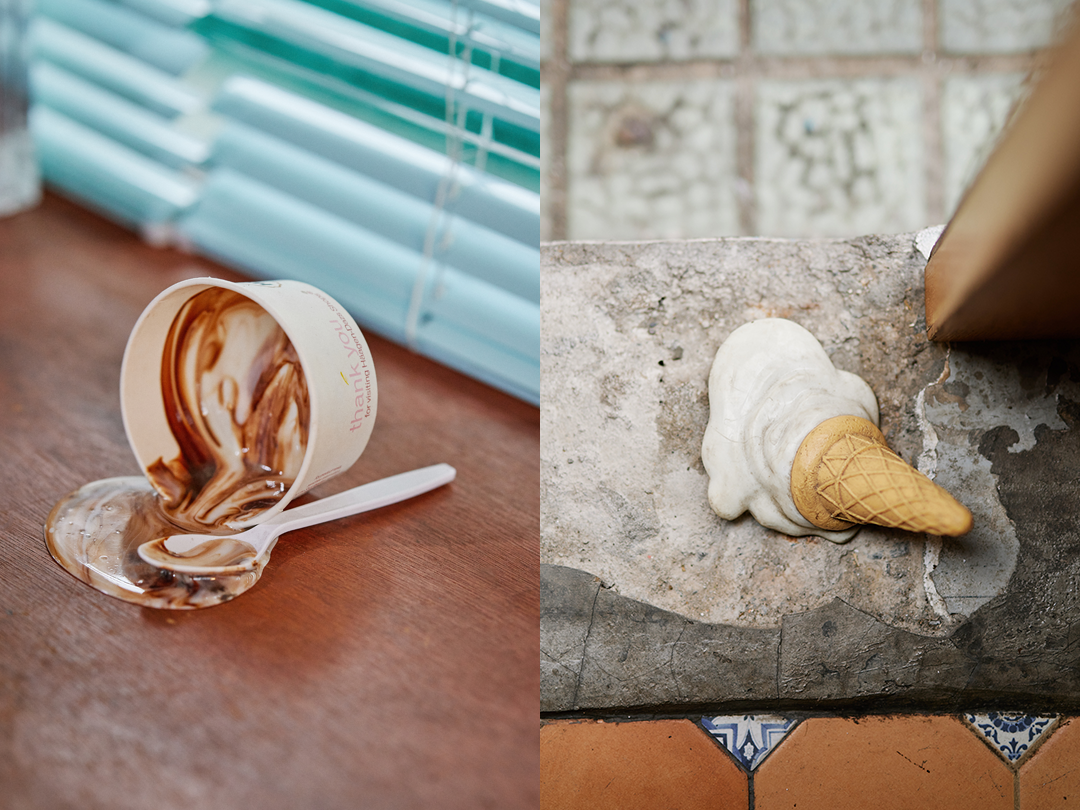 어렸을 땐 아이스크림이 토템 같은 거였어요. 왜 영화 인셉션을 보면 팽이를 돌려서 현실인지 꿈인지를 파악하잖아요. 아이스크림은 저에게 시간이 흘러가고 있다는 상징적인 메시지를 늘 주었습니다. 녹는다는 현상이 시간의 흐름의 시각적 형태였으니까요.
