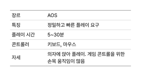 국내에서 가장 인지도와 인기가 높은 게임 중 하나죠. 리그 오브 레전드는 전략과 액션이 결합된 AOS 장르의 대표작입니다. 한 판은 30분 내외지만, 그 안에서 수백 번의 클릭과 입력이 쏟아지죠. “전략 게임과 비슷하지만 하나의 캐릭터를 직접 조종하며, 적 위치를 예측하고 빠른 컨트롤이 필요해요.” 순간의 판단이 팀 전체의 승패를 좌우하고, 집중이 끊기면 게임은 기울어집니다.