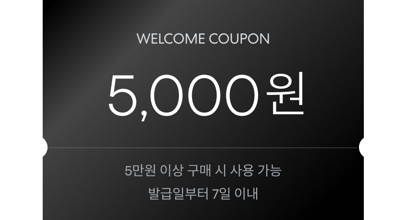 - 웰컴 쿠폰은 다른 쿠폰과 중복 사용이 불가합니다.