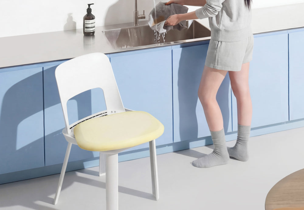 다이닝 공간은 청결 관리가 중요하므로 오염에 강한 소재인지, 공간 효율을 위해 스태킹(Stacking)이 가능한지 확인해야 합니다. 시디즈 마네(MANE)는 유선형 디자인의 아름다움과 수직 적재의 실용성을 동시에 갖춘 식탁 의자입니다. 또한 별도의 보호 캡 없이도 이동 소음을 최소화하고 마루 바닥을 안전하게 보호하도록 설계되어, 층간 소음 예방은 물론 쾌적한 주방 환경을 유지하는 데 탁월한 효과를 제공합니다.