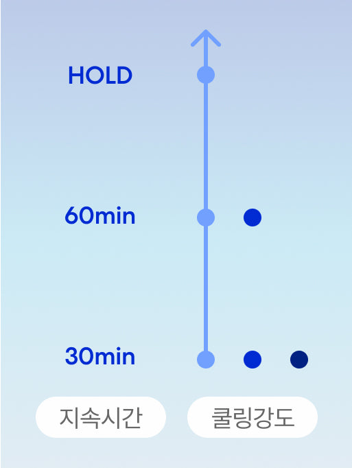 바람이 3단계에서 30분 지속 후 2단계에서 60분, 이후에는 1단계로 바람이 약해지며 유지됩니다.